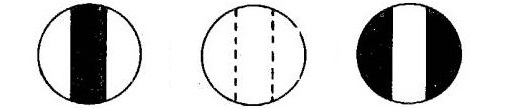 從光源(1)射出的光線(xiàn),通過(guò)聚光鏡(3)、濾色鏡(4)經(jīng)起偏鏡(5)成為平面偏振光,在半波片(6)處產(chǎn)生三分視場(chǎng)。通過(guò)檢偏鏡(8)及物、目鏡組(9)可以觀察到如圖二所示的三種情況。轉(zhuǎn)動(dòng)檢偏鏡,只有在零度時(shí)(旋光儀出廠(chǎng)前調(diào)整好)視場(chǎng)中三部分亮度一致(如圖二b)。