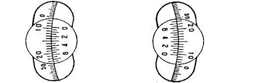 當(dāng)放進(jìn)存有被測(cè)溶液的試管后,由于溶液具有旋光性,使平面偏振光旋轉(zhuǎn)了一個(gè)角度,零度視場(chǎng)便發(fā)生了變化(如圖二a或c)。轉(zhuǎn)動(dòng)檢偏鏡一定角度,能再次出現(xiàn)亮度一致的視場(chǎng)。這個(gè)轉(zhuǎn)角就是溶液的旋光度,它的數(shù)值可通過(guò)放大鏡(10)從度盤(pán)(11)上讀出。