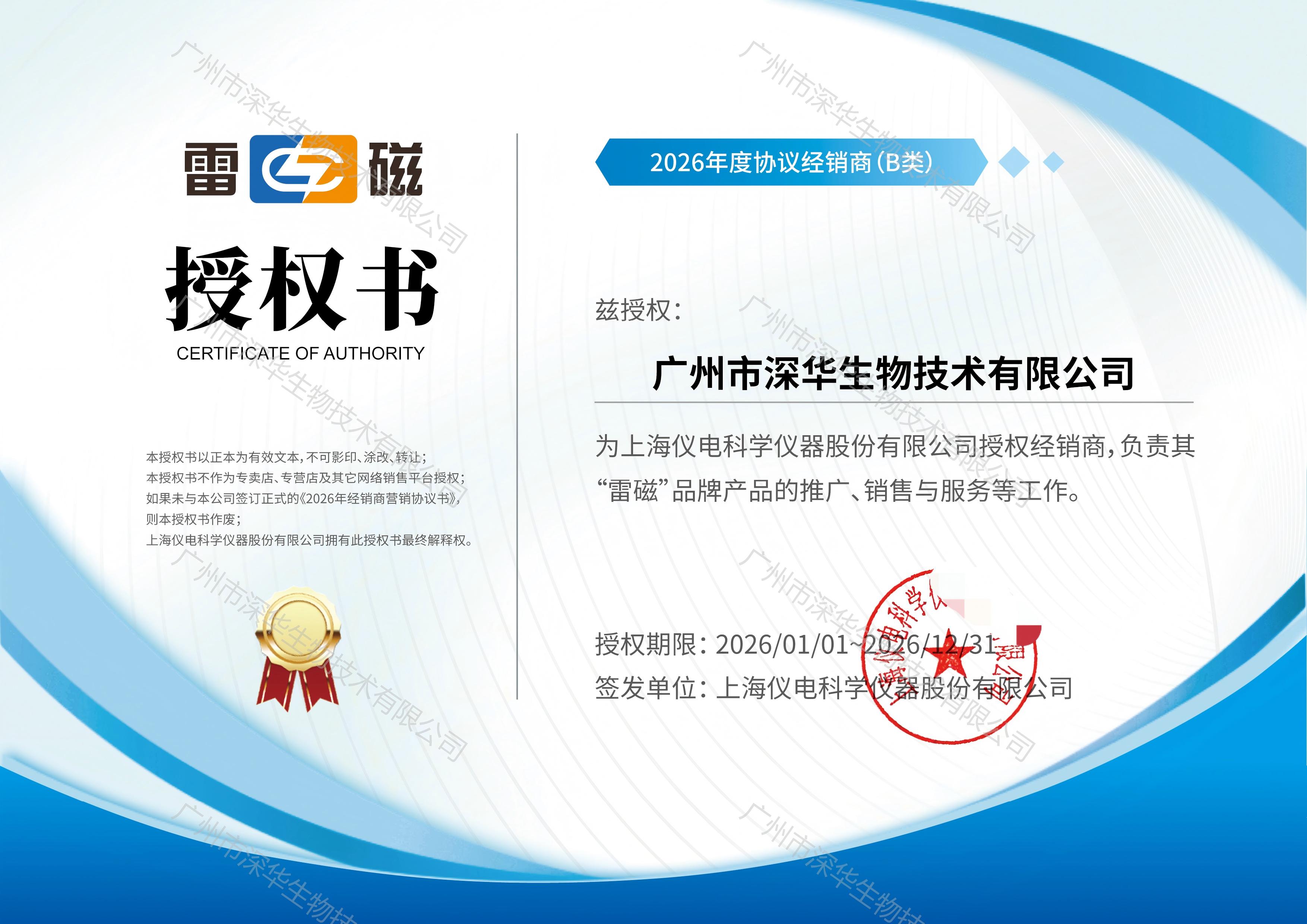 廣州市深華生物技術有限公司正式成為上海儀電科學儀器“雷磁”品牌2026年度授權經(jīng)銷商
